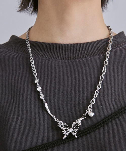 存在感のあるバタフライ×ハートモチーフ付きネックレス。