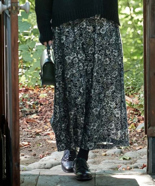 アネモネやサイネリアの花が咲く「冬の花畑キュロパン」は、畝が細かい21ウェルのコール天生地で仕立てています。