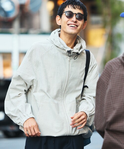 ●オールシーズン使えるチェック柄フーディーブルゾン