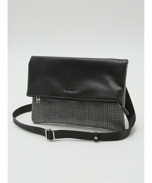 モードな雰囲気が漂うグレンチェック柄のポリエステル生地と、エンボス加工で細かい凹凸感を表現した合成皮革を使用しています。軽くて耐久性があるので扱いやすく、お手入れも簡単です。
