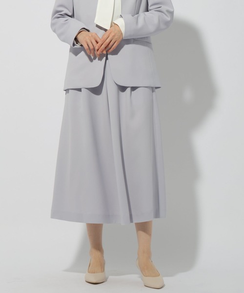 フロントタックでふんわりとしたシルエットを作り出し、お腹周りをカバーしつつ女性らしさを演出してくれるフレアスカート。