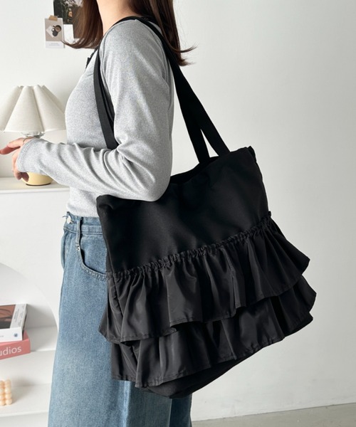 2way仕様で雰囲気が変わる大容量フリルトートバッグ♡
