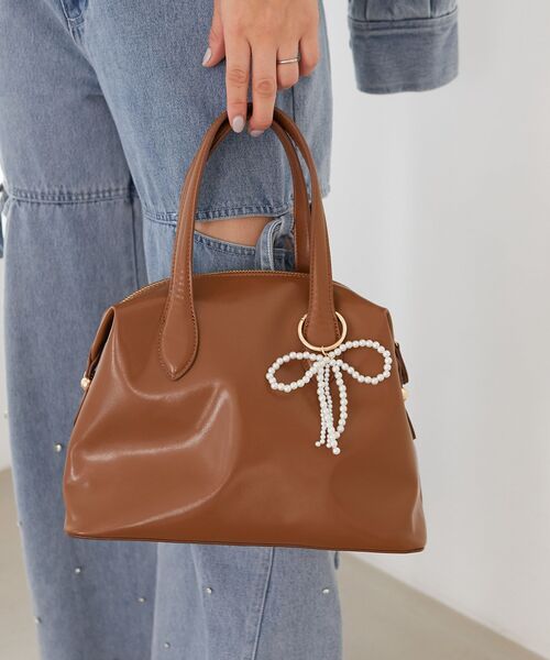 取り外し可能なパールのチャームがセットになったボストンバッグ。