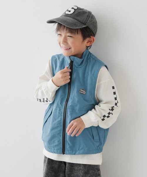 大きなポケットがポイントのナイロンベスト。さっと羽織るだけでトレンド感のある着こなしが完成。