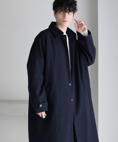軽量ながら厚みを持たせたメルトン素材が暖かなステンカラーコート。
