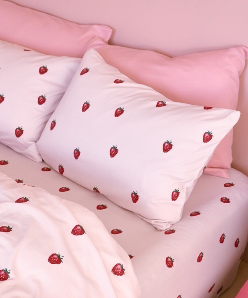 【なめらかなコットンレーヨンのストロベリー柄ピローケース】