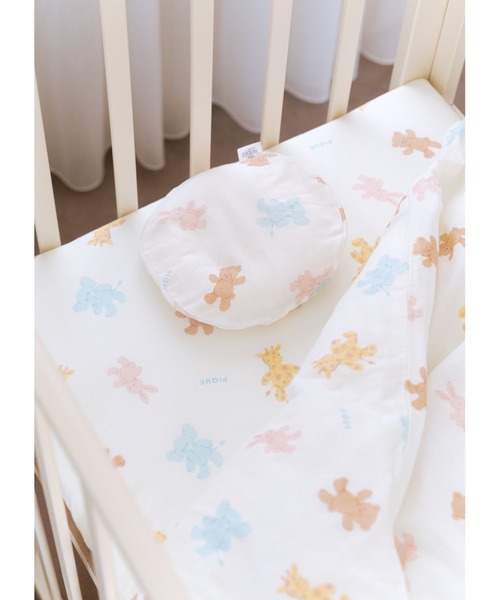 寝具の老舗メーカー・西川株式会社とgelato pique sleepのダブルネームによる、BABYのための寝具6点セットです。内容は洗濯機で洗える羽毛掛け布団と、赤ちゃんの未発達な背骨に良い適度な固さの敷き布団、ドーナツ型の枕、掛けカバーとシーツ、ピローケースの計6アイテム。二重ガーゼのカバー類はカラフルなアニマルぬいぐるみがふわっと飛んでいるような、ルームウェアとお揃いのプリント柄をあしらいました。すべてのアイテムが安心の国産品。枕は赤ちゃんの頭を優しくホールドする西川株式会社の特許取得のドーナツ枕を採用しています。商品は特製の収納ケースに入れてお届け。同柄のカバー類は単品でもご購入いただけます。出産祝いのギフトにもおすすめのアイテムです。