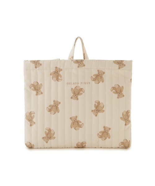 手描きタッチのベア柄とイチゴ柄から選べる、春の新生活に向けたKIDSのためのバッグシリーズです。この春から入園・入学や新学年を迎えるKIDSにおすすめしたいキルティング素材のレッスンバッグ。B4まで入るマチなしの定番型の手提げバッグで、内側に名前を書けるネームタグが付いています。色はベア柄のアイボリーと、イチゴ柄のピンクの2色。同シリーズのハットや巾着などとコーディネートしたり、ギフトにもおすすめのアイテムです。