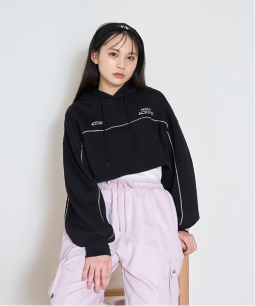 裏起毛の短丈パーカと長袖テレコTシャツのセットです。