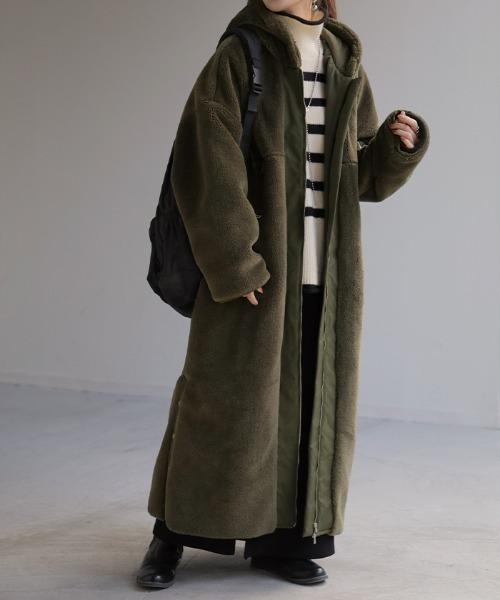 羽織るだけで着映えするボア素材×フードデザインが魅力の一着。