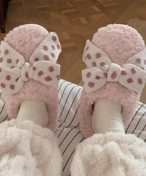 ふわふわもこもこ♡あったかかわいいリボンルームシューズ