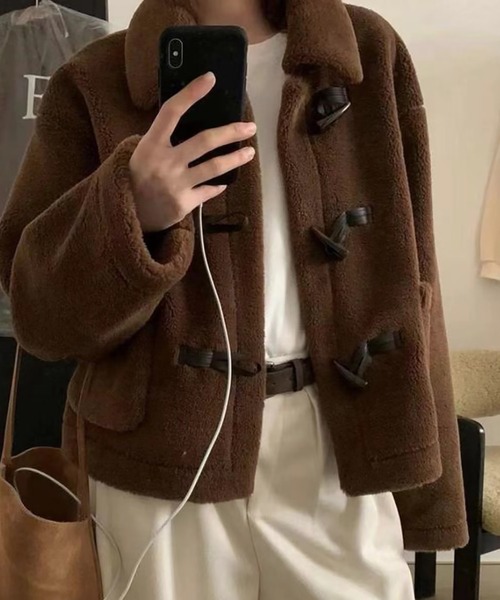・カジュアルでありながら上品さを感じさせる、トグルボタンがポイントのダッフルショートコート。