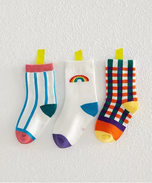 【 Bambin / ボンバン 】 レインボー カラー ソックス 《 3足 セット 》
