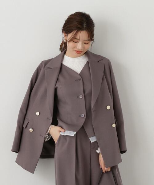 同素材のジャケット・ワイドパンツとスリーピース対応アイテム。