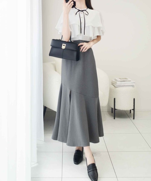 マーメイドスカートの縦長シルエットでスタイルアップデザイン。