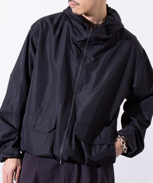 裾の両サイドにはドローコードが付いており引くことで、丈を短くしたり、バルーンシルエットに変えたり好みに調整出来ます。