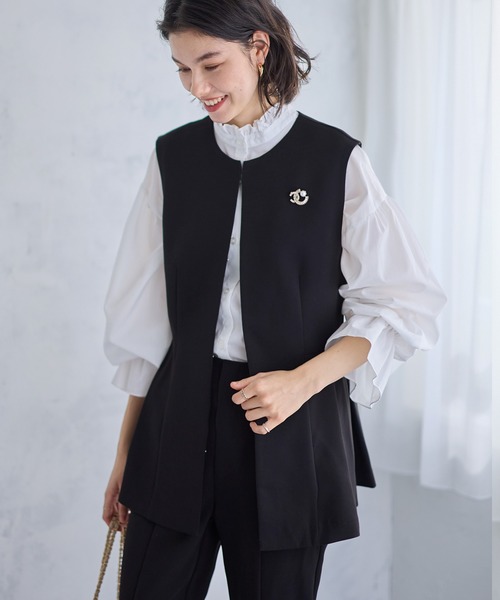 洗練された着こなしが叶うペプラムジレベストセットアップ