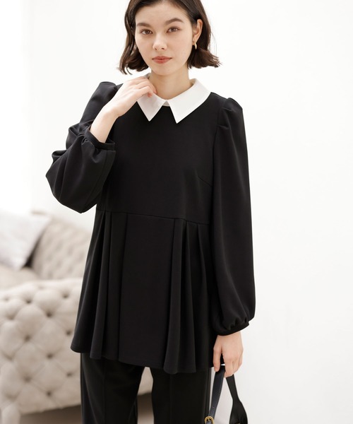 〇バイカラーの付け衿とプリーツデザインのトップスが大人可愛い