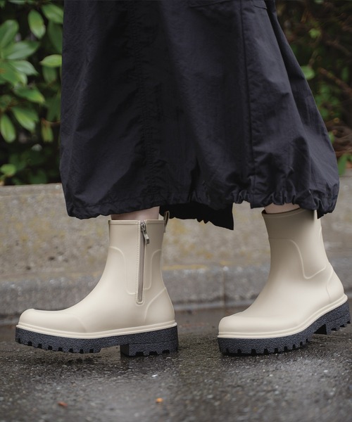 レインブーツ ショートブーツ 雨の日 サイドファスナー ブーツ 梅雨 ガーデニング アウトドア 黒 白 ブラック アイボリー ホワイト オフ 23.5cm 24cm 24.5cm 雨靴 人気 無地 シンプル 長靴 お洒落 おしゃれ 歩きやすい 滑りにくい 滑り止め 着脱しやすい 脱ぎやすい かわいい