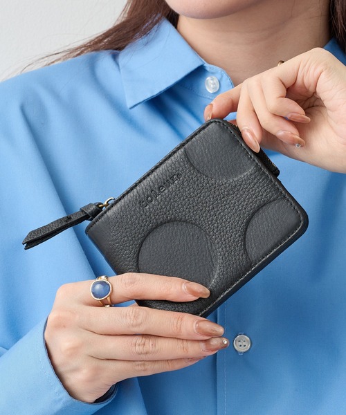 型押しドットデザインが特徴的な二つ折りウォレットが