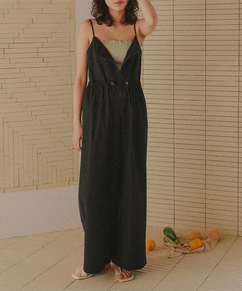 撥水素材だからこそ、アクティブな日にも気兼ねなく着用可能。1枚でサマになるオールインワンで、夏のおしゃれを格上げしてくれる一着です。