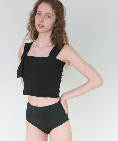 ・タイリボンのワンポイントデザインにこだわったニット素材シンプルビキニ。