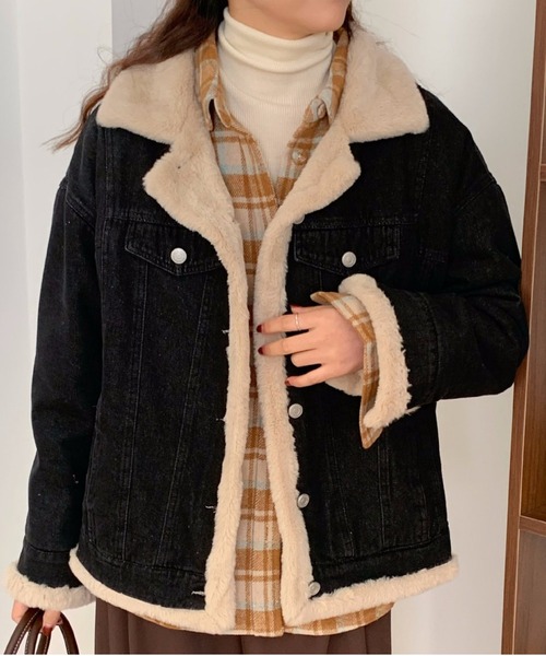ジャケット デニム 裏ボア カジュアルコーデ 韓国ファッション 冬 冬服 /JO24B002