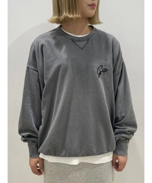 もとの色の上に違う色を重ねる後染め加工「オーバーダイ」を施した優しく心地良い肌触りのコットン混フレンチテリーオーバーサイズトレーナー
