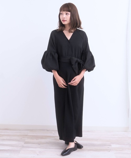 ぽわんとしたバルーンスリーブが印象的な体型カバー&着映えを叶えるドッキングワンピース
