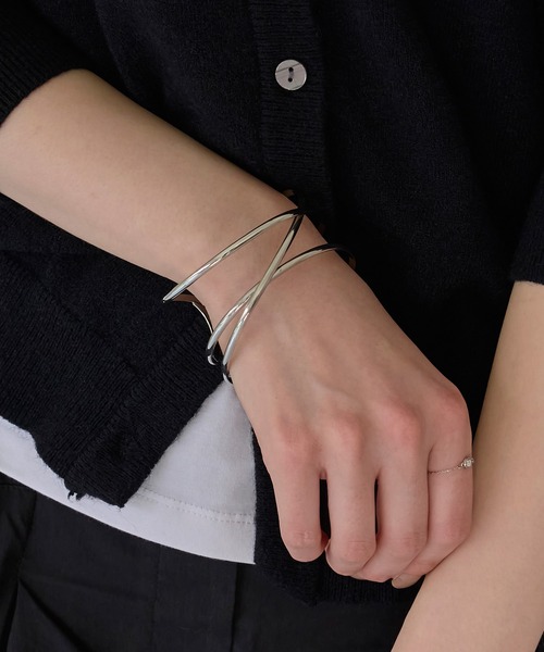 【ニュアンス感のある3連風のメタルラインがトレンドライクなバングル】甲丸形状の金線をクロスさせて立体的に仕上げました。