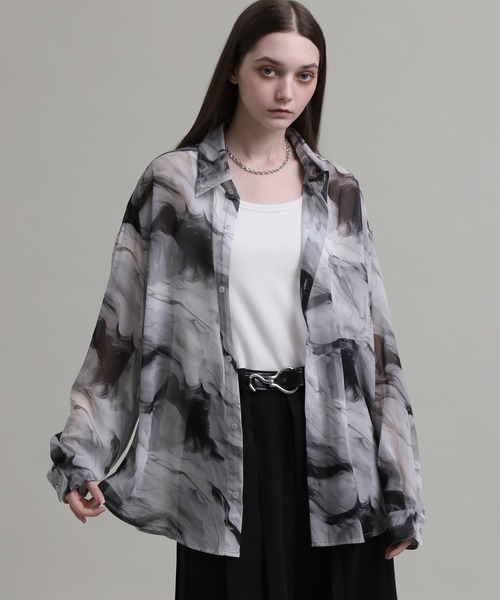 無機質なマーブル柄がモードな雰囲気溢れるシアーシャツ。