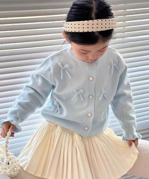 小さなリボンがアクセントになったキュートなカーディガン。