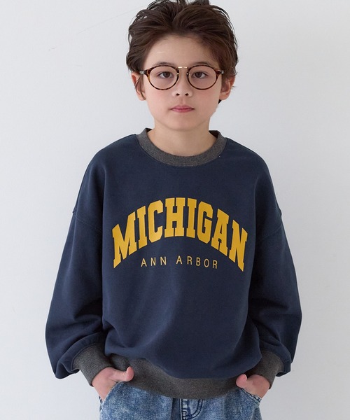 ジュニア トップス スウェット ロゴ 英字 長袖 裏毛 プルオーバー クルーネック ミディアム丈 リブ カジュアル カレッジ リンガー 120 130 140 150 COCA