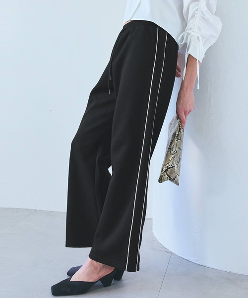 上品な印象で高見え効果のあるソフトスウェットのラインパンツ。