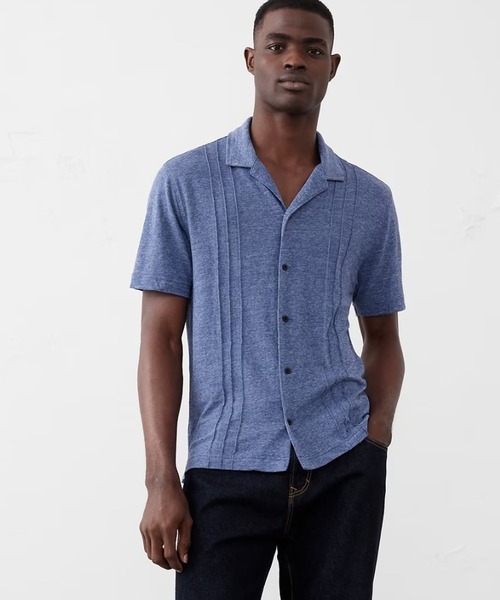 暖かい日のマストアイテム!軽くて通気性に優れた麻混のオープンカラーシャツ