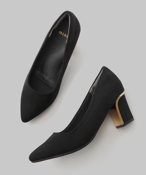黒×変わりヒールの異素材コンビは、お仕事服でも褒められる足元に。