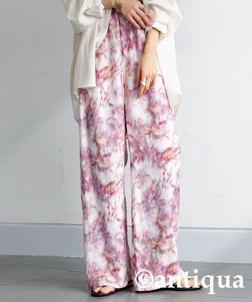 淡くにじむような水彩柄が美しい、リラクシーな雰囲気漂うストレートパンツ。