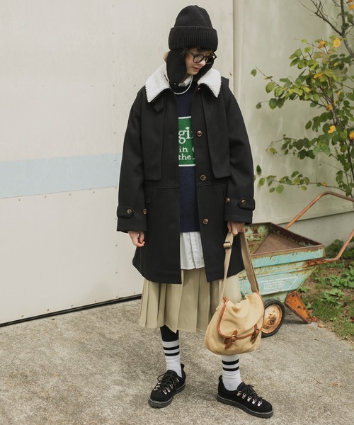 参考商品名:【forksy.】マルチウェイニットメルトンボア襟ミドルコート