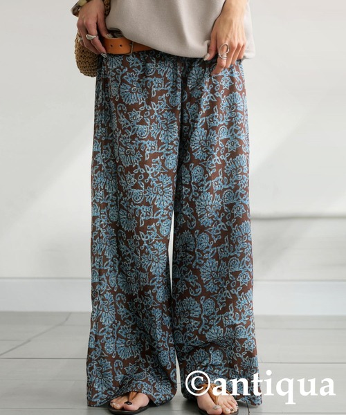 どこか懐かしいオリエンタルな柄が映える、大人の為の総柄パンツ。