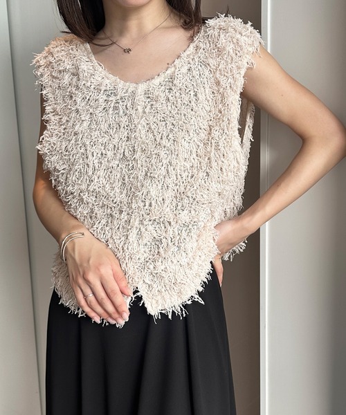 毛足の長い素材感が夏に映える、コンパクトなニットベスト。