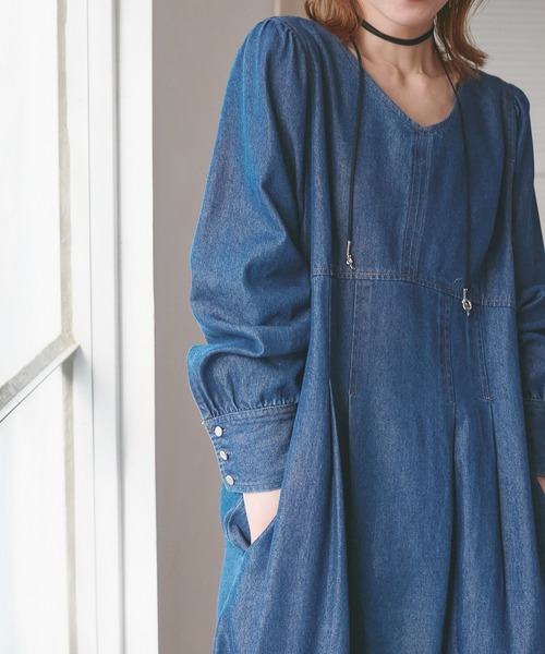 ・レディライクな袖付きワンピースを、デニム素材でほどよくカジュアルダウン。