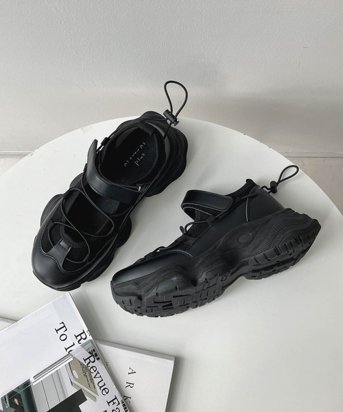 大人気の厚底スニーカーサンダルのソール部分はそのままに、クロスベルトとリボンデザインでトレンドのバレエコアスタイルにぴったりなスニーカーが登場!!