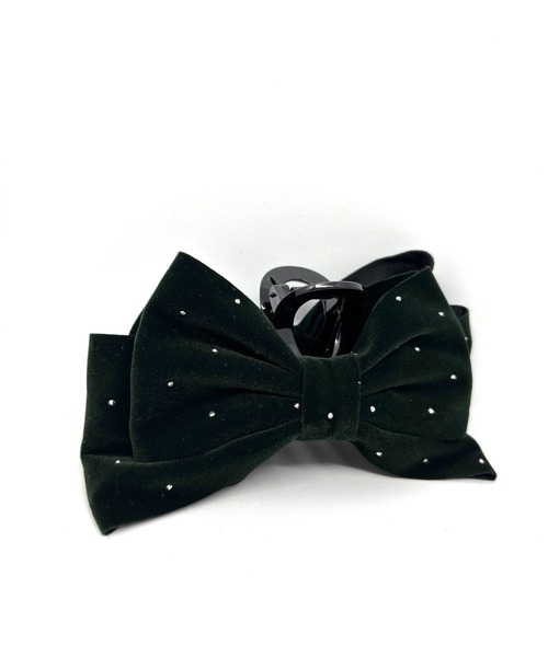 大きいベロアのリボンにキラキラのラインストーンが目を惹くバンスクリップ♡