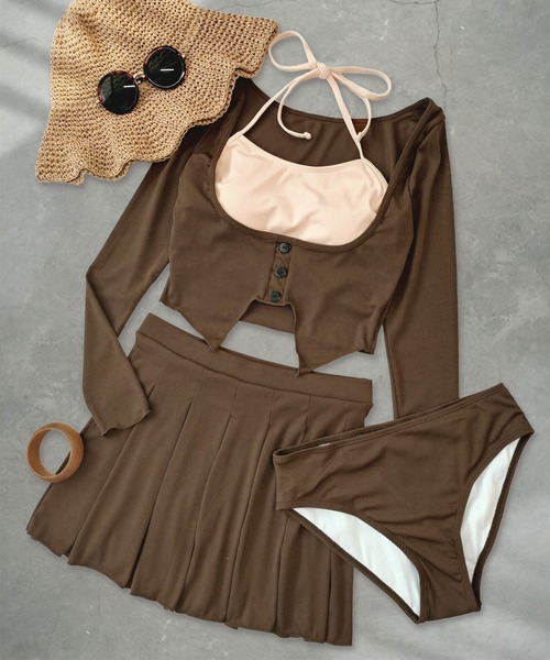 *Osyarevo`s STYLE *■ POINT / ポイント胸元が大きく開いたカーディガン風デザインがガーリッシュな雰囲気を演出するセット水着。