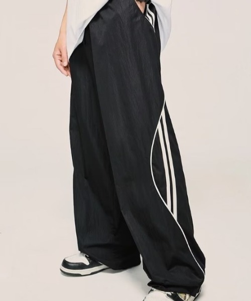 サイドに施したウェーブラインがレトロ&スポーティーなアクセントをプラスしたナイロンパンツ。