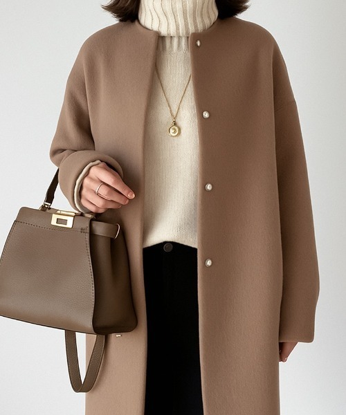 【ノーカラーロングコート】