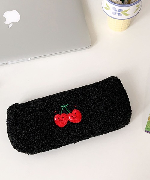 もこもこ素材が愛らしいデザインの可愛いペンポーチ。