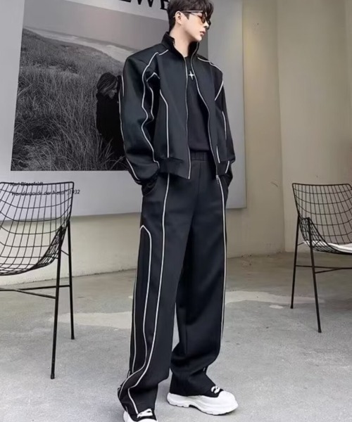 LARGE:身幅65.0 肩幅59.5 着丈61.0 そで丈58.5 ウエスト71 ヒップ102 パンツ丈103.0 股上34.0 股下73.0 もも周り70 すそ周り52