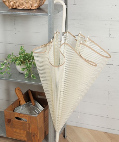 クリア生地を使い、プラスチックパーツをすべてオフホワイトカラーにしたりと、通常のビニール傘と異なるデザインがポイントです。