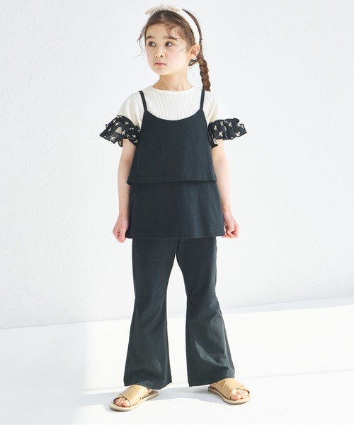 キャミソールトップスとロングパンツがセットになった天竺素材のセットアップです。